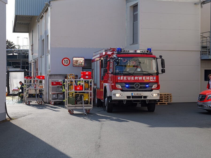 Schnell stellte sich heraus: Es handelte sich um eine groß angelegte Übung unter realitätsnahen Bedingungen. Die Einsatzleitung erhöhte das Alarmstichwort auf „ABC 2“, woraufhin insgesamt 123 Kräfte aus Feuerwehr, Rettungsdienst und dem ABC-Zug der Region Hannover-Ost anrückten. Letzterer setzt sich aus Einheiten der Städte Lehrte, Burgdorf, Sehnde und Uetze zusammen.