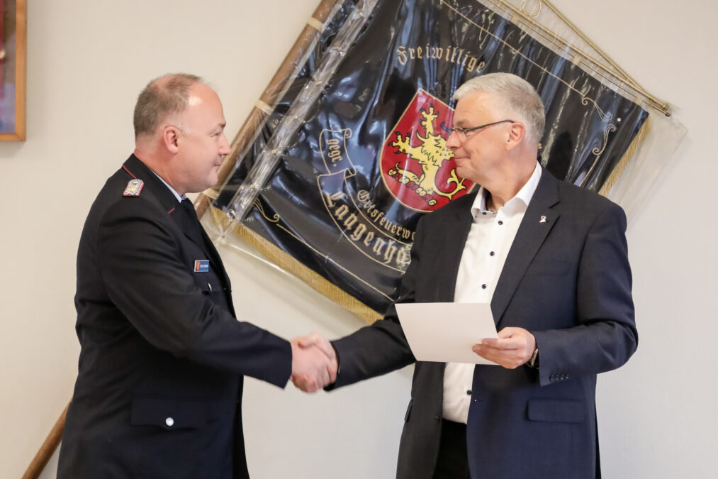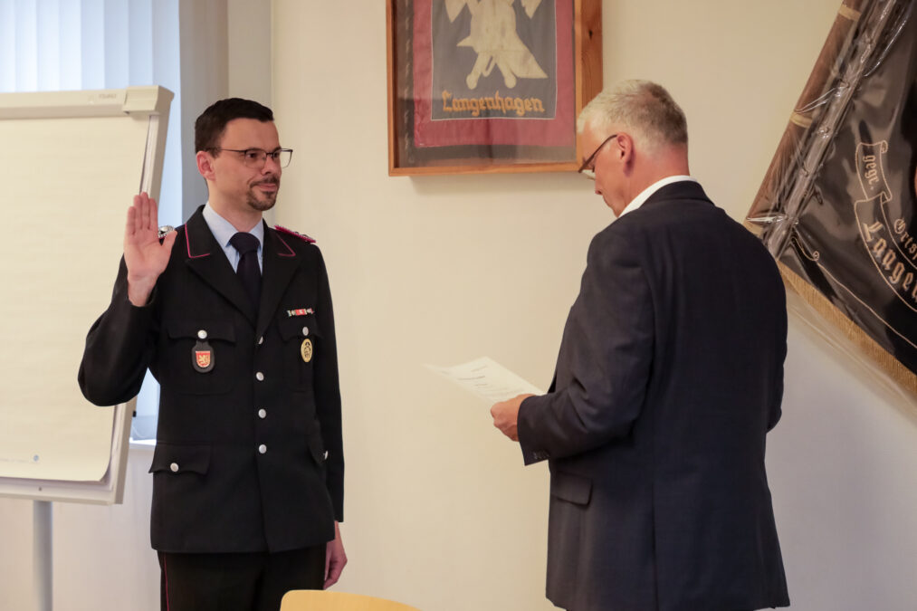 Langenhagen (redk). Nach zwölf Jahren an der Spitze der Ortsfeuerwehr Langenhagen wurde am 10. September 2025 ein feierlicher Amtswechsel vollzogen: Bürgermeister Mirko Heuer verabschiedete den bisherigen Ortsbrandmeister Jens Heindorf und vereidigte dessen Nachfolger Martin Bombach offiziell als Ehrenbeamten. Anschließend überreichte der 1. stellvertretende Stadtbrandmeister Karsten Habermann das Dienststellungsabzeichen, das Bombach nun als neuen Ortsbrandmeister auszeichnet.