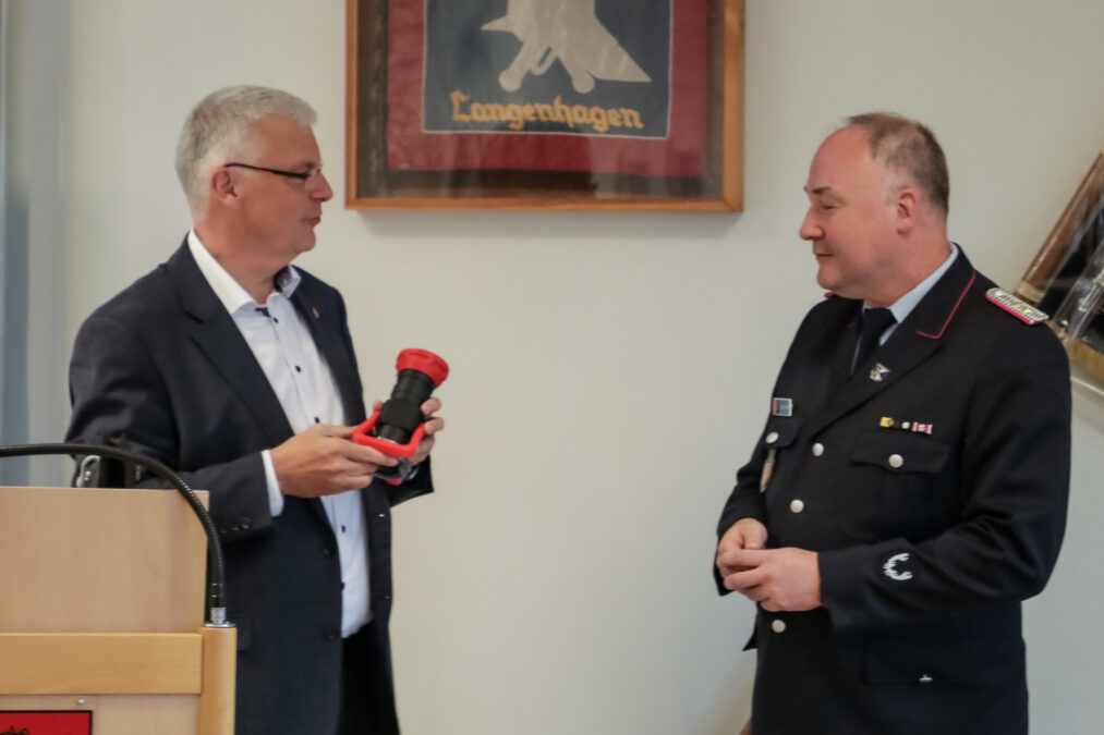 In seiner Ansprache würdigte Bürgermeister Heuer die Verdienste von Jens Heindorf: „Das waren zwölf Jahre Verantwortung für unsere Schwerpunktfeuerwehr. Diese Aufgabe trägt man nicht nebenbei – sie verlangt viel Zeit, Energie und Nerven.“ Er betonte zugleich Heindorfs organisatorisches Geschick sowie sein großes Herzblut für die Feuerwehr und die Menschen in Langenhagen.