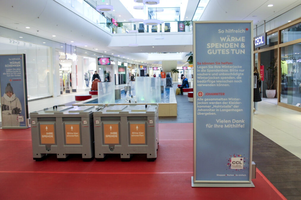 Im Aktionszeitraum werden im CCL zwei Spendenboxen in der Mall auf der Fläche hinter dem Brunnen aufgestellt. Dort können Kundinnen und Kunden Winterkleidung, Schuhe, Winterjacken sowie Wolldecken abgeben. Alle gespendeten Stücke werden nach Abschluss der Aktion an die Kleiderkammer „Nahtstelle“ der Johanniter übergeben.