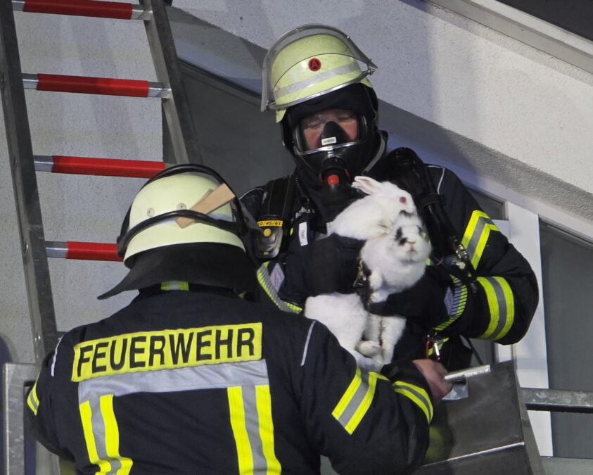 Im weiteren Verlauf des Einsatzes konnten Feuerwehrkräfte unter Atemschutz vier Kaninchen aus dem Obergeschoss des Gebäudes retten. Das Feuer beschränkte sich auf das Dachgeschoss des Wohnhauses.