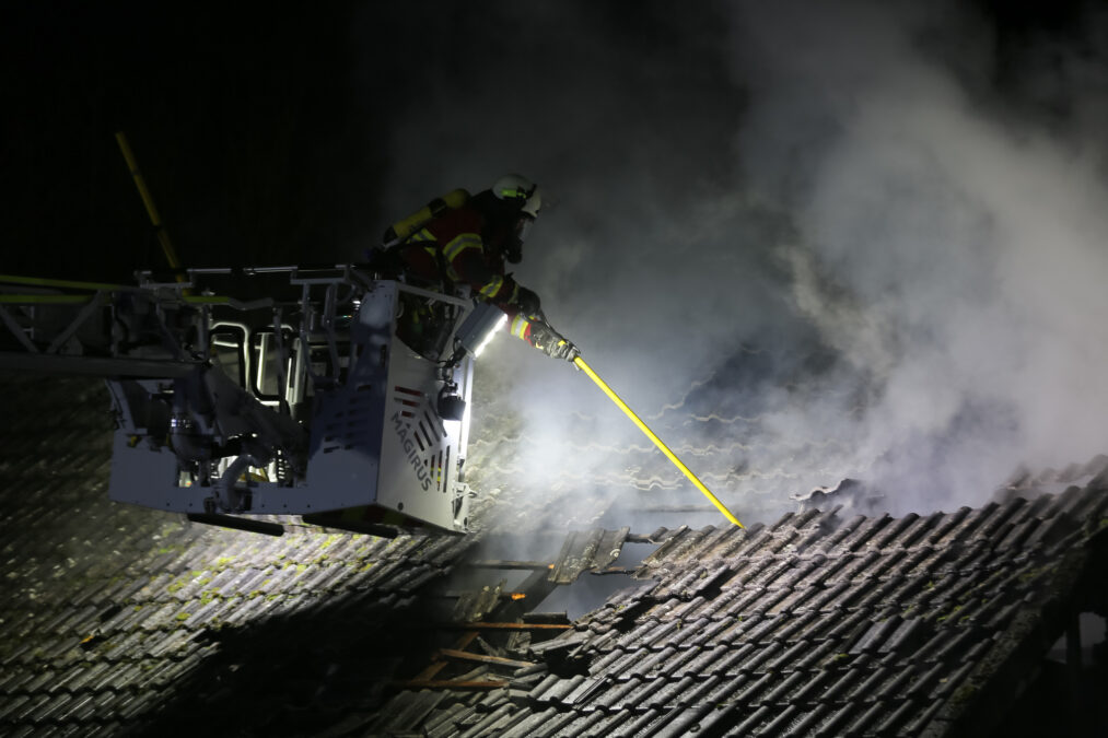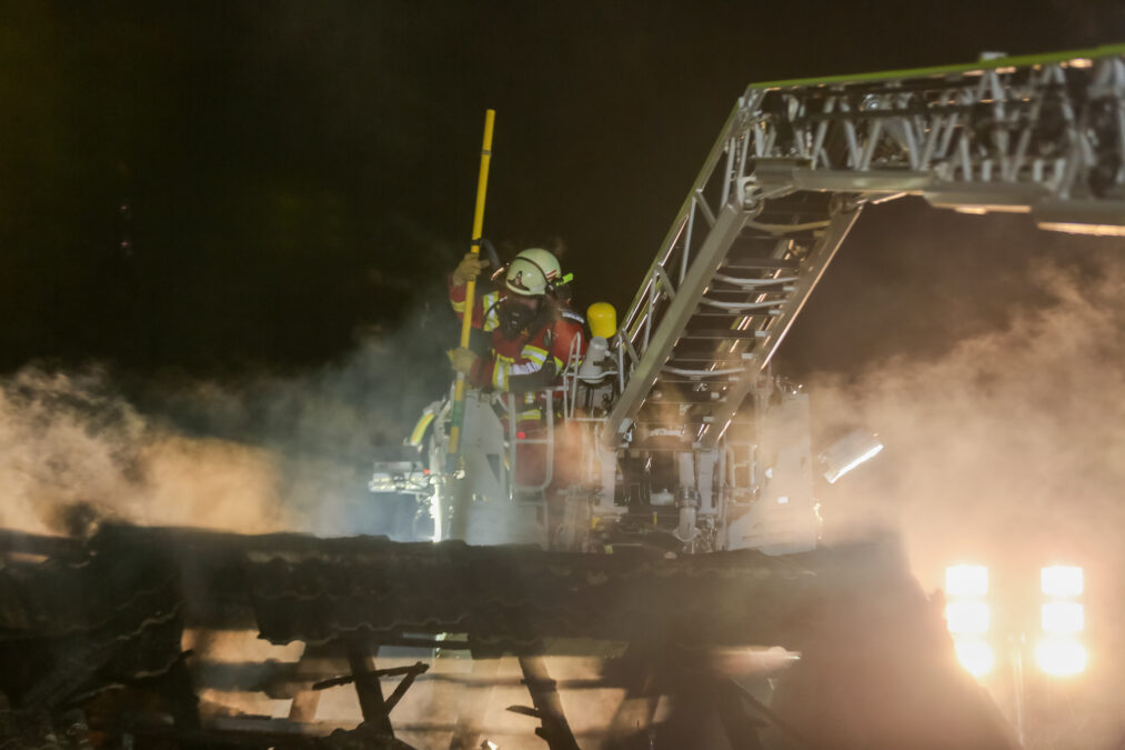 Der Dachbereich der Scheune brannte vollständig aus. Ein Übergreifen des Feuers auf eine unmittelbar angrenzende weitere Scheune konnte jedoch verhindert werden.