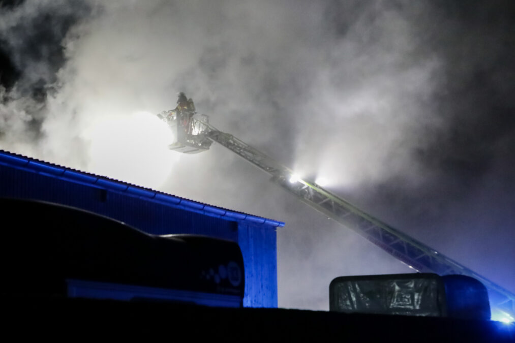 Beim Eintreffen der Feuerwehr stand der Dachbereich der Scheune bereits in Flammen. Ersthelfer hatten bereits zuvor Maschinen aus der Halle ins Freie gebracht und erste Löschversuche mit Feuerlöschern unternommen. Zwei Personen erlitten dabei eine Rauchgasintoxikation und wurden ambulant in einem Krankenhaus behandelt.