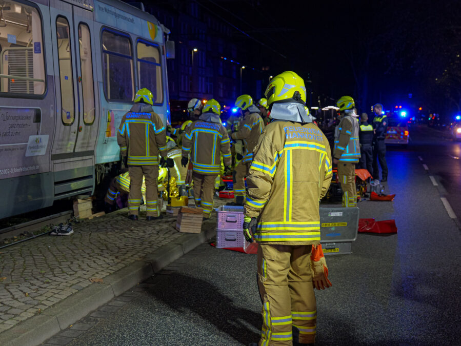 Der Unfall ereignete sich gegen 00:55 Uhr auf der Vahrenwalder Straße zwischen den Haltestellen Niedersachsenring und Büttnerstraße. Feuerwehrkräfte hoben den Drehkranz des betroffenen Stadtbahnwagens mithilfe hydraulischer Rettungsgeräte vorsichtig an, um den Mann zu befreien. Während der gesamten Rettungsmaßnahme blieb der Verletzte ansprechbar. Er wurde anschließend vom Rettungsdienst in eine Klinik gebracht.