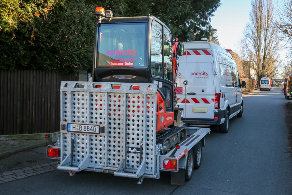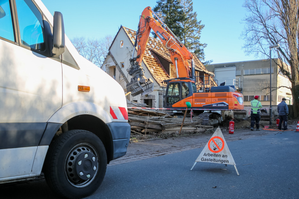 Nach ersten Erkenntnissen wurde die Gasleitung mutmaßlich bei Abrissarbeiten auf einem Grundstück beschädigt. Der alarmierte Energieversorger öffnete die Straße, um den betroffenen Hausanschluss abzuklemmen und die Gaszufuhr zu unterbrechen.