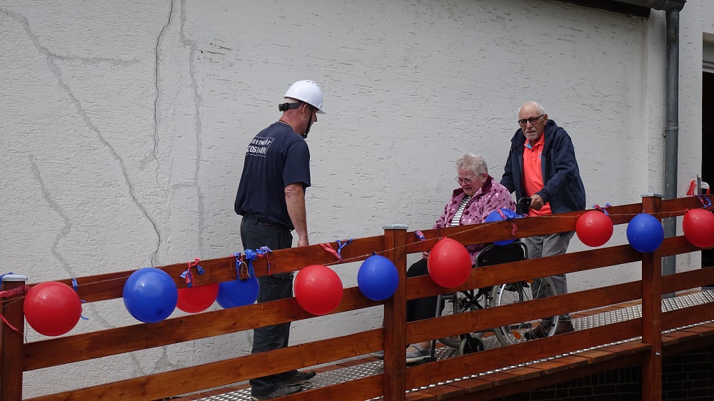 Am 23. August erfolgte die feierliche Einweihung. Im Beisein der Familie und der beteiligten Feuerwehrleute konnte Georg W. zum ersten Mal seine Frau Conny die neue Rampe hinunterschieben – ein emotionaler Moment, bei dem viele Freudentränen flossen.