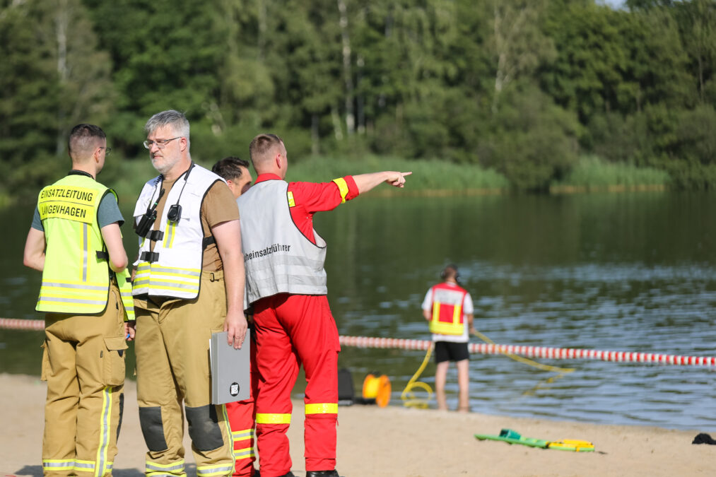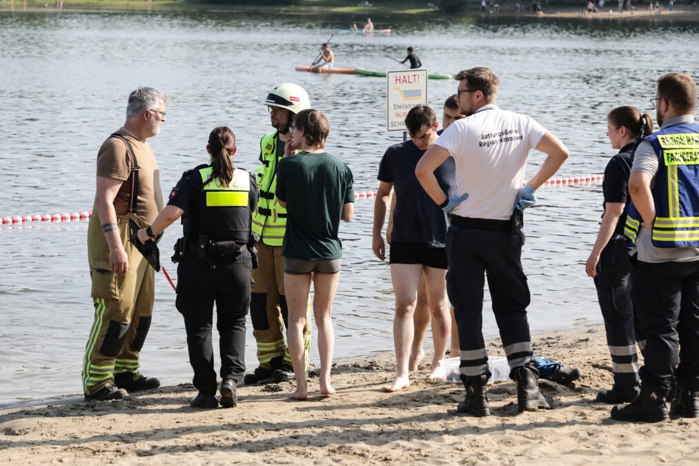 Langenhagen (redk). Ein Großaufgebot an Rettungskräften von Feuerwehr und Deutscher Lebens-Rettungs-Gesellschaft (DLRG) ist am heutigen Mittwochnachmittag, 13.08.2025, am Silbersee in Langenhagen im Einsatz gewesen. Gegen ca. 16.30 Uhr ging bei den Einsatzleitstellen die Meldung ein, dass ein Badegast vermisst werde. Seine Kleidung war am Strand gefunden worden, von ihm selbst fehlte jedoch jede Spur. Eine Passantin hatte daraufhin den Notruf gewählt.
