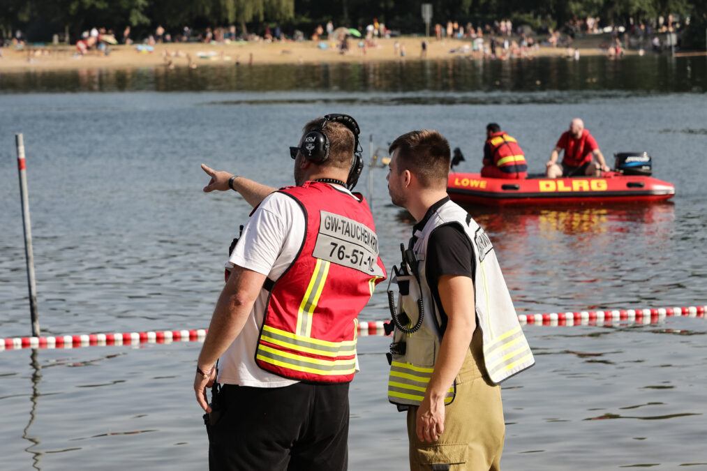 Feuerwehr und DLRG suchten mit Booten und Tauchern nach Mann im Wasser