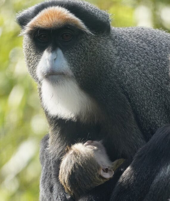 Hannover (pm/redk). Aller guten Dinge sind drei: Am 9. August erblickte das dritte Jungtier von Brazza-Meerkatze „Meg“ im Erlebnis-Zoo Hannover das Licht der Welt. Das Neugeborene ist im dichten Fell der Mutter und unter dem charakteristischen weißen Spitzbart bestens verborgen – nur mit Geduld und genauem Hinsehen lässt sich der kleine Neuzugang entdecken.