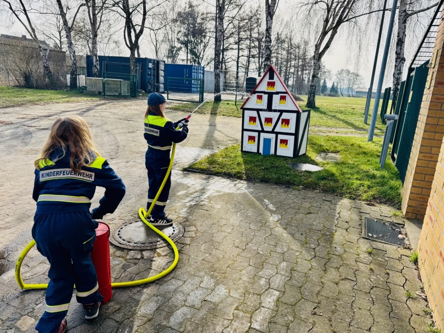 Ein besonderes Highlight für viele Teilnehmende war eine Löschübung. Dabei konnten die Kinder selbst mit einer Kübelspritze einen kleinen Löschangriff durchführen.