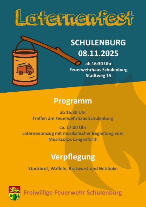 Langenhagen/Schulenburg (red). Die Ortsfeuerwehr Schulenburg lädt alle großen und kleinen Gäste herzlich zum diesjährigen Laternenfest ein. Treffpunkt ist am Samstag, 8. November 2025, ab 16:30 Uhr am Feuerwehrhaus Schulenburg, Stadtweg 15.