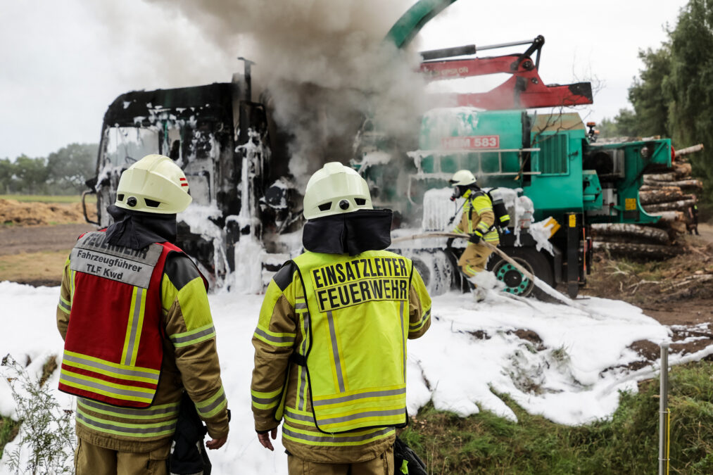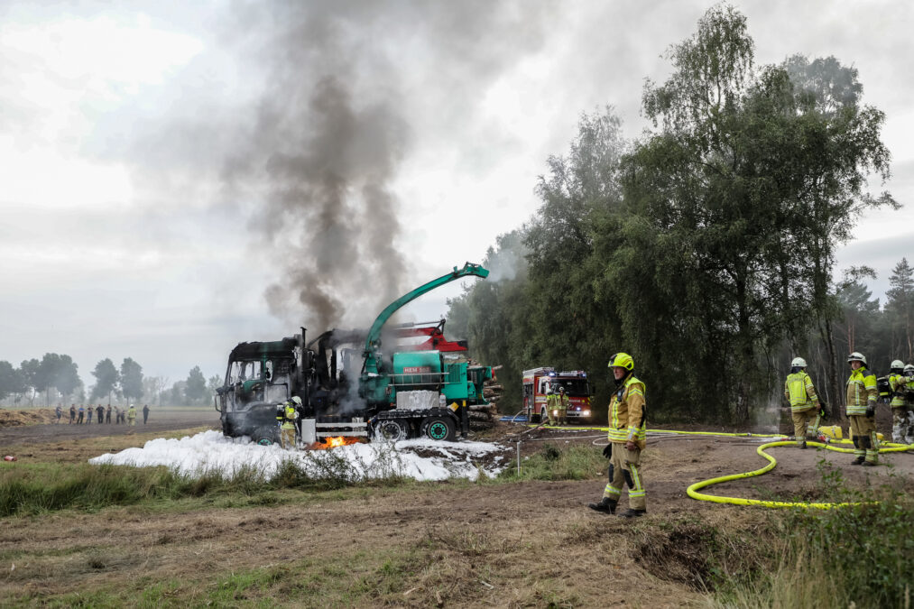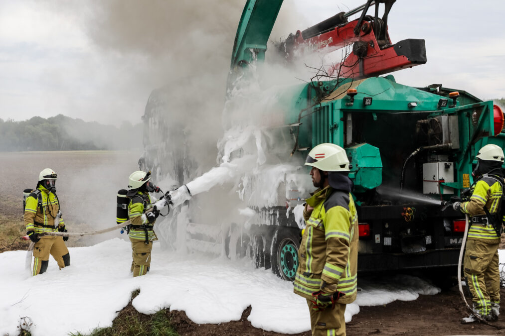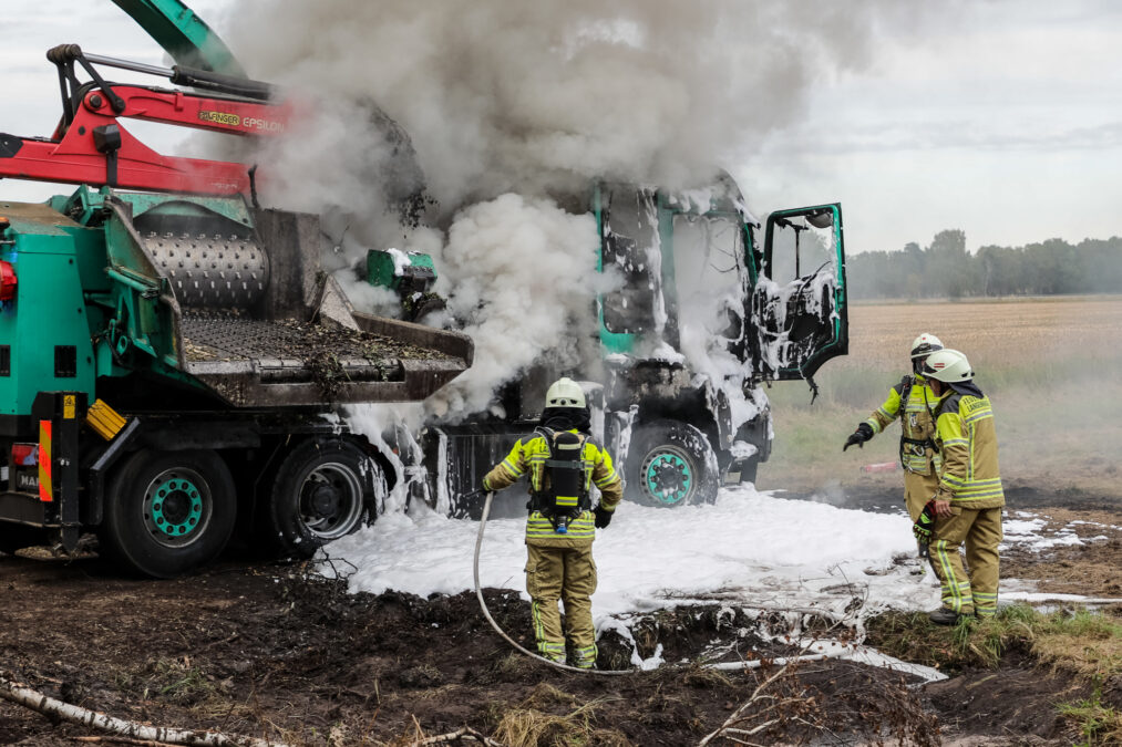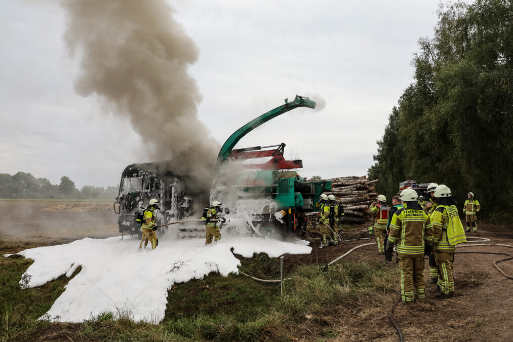 Langenhagen/Kaltenweide (redk). Am heutigen Montagabend, 08. September 2025, wurde die Feuerwehr Kaltenweide gegen kurz nach 18 Uhr zu einem LKW-Brand am Achtminutenweg alarmiert. Beim Eintreffen der ersten Kräfte stand das Fahrzeug, ein LKW mit Häcksler-Aufsatz für Baumfällarbeiten, bereits in Vollbrand.