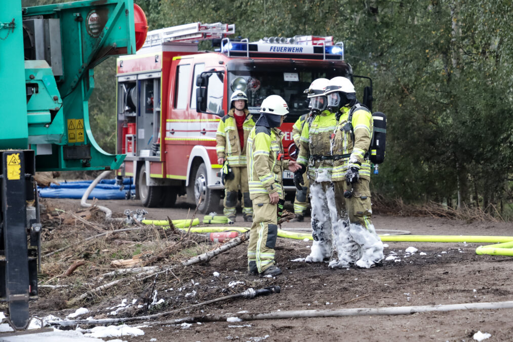 Nach ersten Informationen vor Ort wurden für die Brandbekämpfung mehr als 20.000 Liter Löschwasser sowie rund 200 Liter Schaummittelzusatz eingesetzt. Durch austretendes Hydrauliköl und Dieselkraftstoff wurden die Löscharbeiten erschwert. Untere Wasserbehörde wurde zu dem Einsatz hinzugezogen.