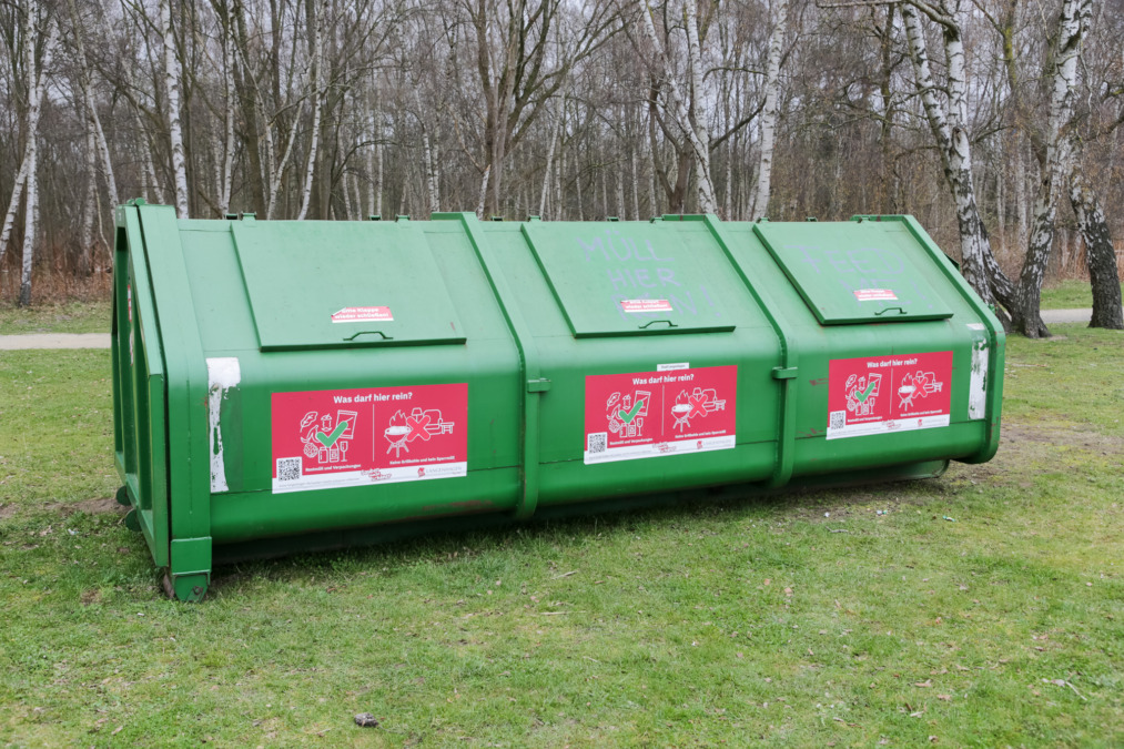 Zur Entsorgung von Abfällen stehen, neben diversen Mülltonnen rund um den See, am Ostufer zwei neue feuerfeste Grillaschetonnen aus Cortenstahl sowie ein großer Müllcontainer mit 13,5 Kubikmetern Fassungsvermögen zur Verfügung. Diese sind für Essensreste, Verpackungen und Grillabfälle gedacht, nicht jedoch für Haus- oder Sperrmüll. Zusätzlich wird das Gelände zweimal wöchentlich, montags und samstags, gereinigt.