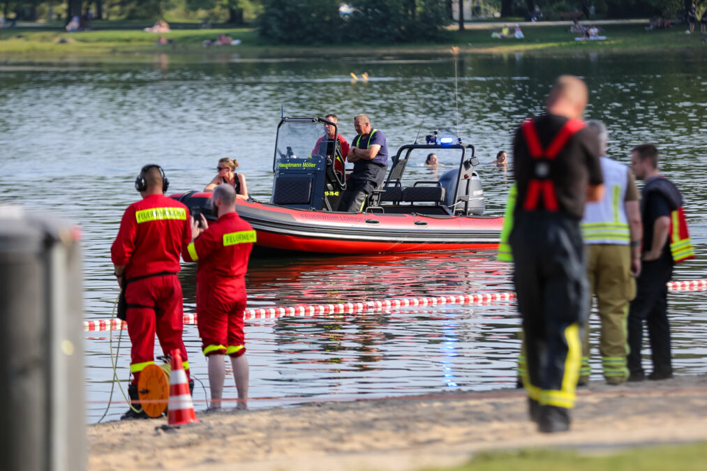 Die Feuerwehr Langenhagen und die DLRG rückten sofort mit zahlreichen Kräften an. Nach dem Eintreffen der ersten Einsatzkräfte wurde der Nahbereich sowohl vom Strand als auch im Wasser abgesucht. Dabei kam auch die sogenannte Tauchkette zum Einsatz: Mehrere Rettungsschwimmer tauchen dabei zeitgleich in einer Linie ab, durchsuchen mit den Armen den Grund und setzen den Vorgang versetzt fort, bis der Bereich vollständig abgesucht ist.