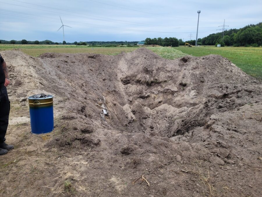 Garbsen (pm/redk). Bei Sondierungsarbeiten auf einer Baustelle in Garbsen wurde am Dienstagvormittag eine Fliegerbombe aus dem Zweiten Weltkrieg entdeckt. Es handelte sich um eine sogenannte Luftmine. Während ein Großteil des Blindgängers durch den Kampfmittelbeseitigungsdienst (KMBD) erfolgreich geborgen werden konnte, musste der Zünderbereich – der Kopf der Mine – vor Ort kontrolliert gesprengt werden.