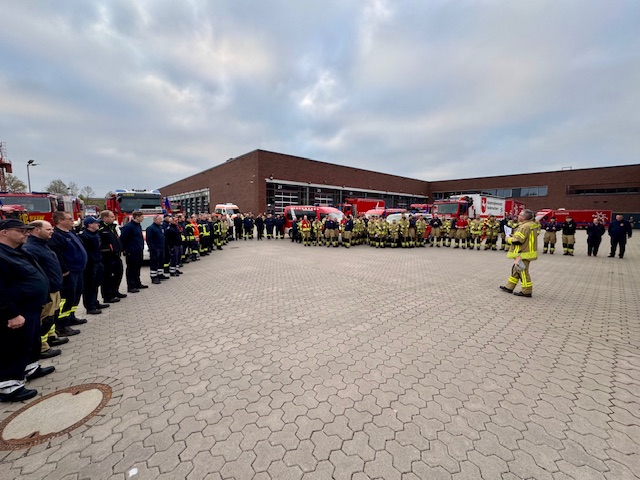 In den frühen Morgenstunden verlegten die Einheiten geschlossen vom Feuerwehrzentrum in Neustadt aus zum Übungsort. Beim Abrücken überbrachte Stadtbrandmeister Martin Ohlendorf den Einsatzkräften die Grüße von Rat und Verwaltung der Stadt Wunstorf.