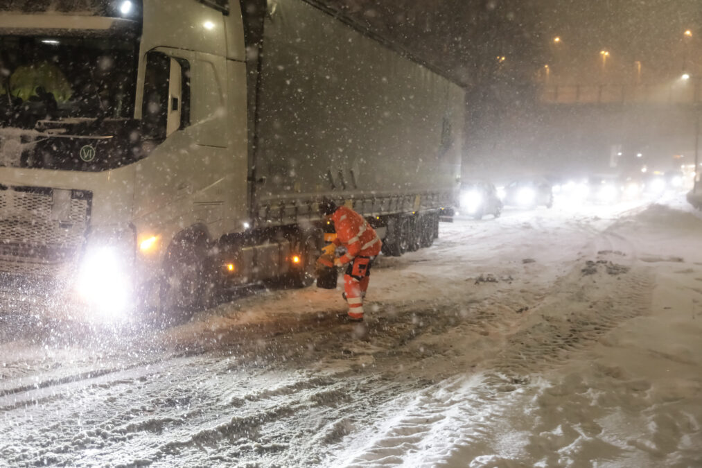 Im Zusammenhang mit dem anhaltenden Winterwetter verzeichnete die Polizei zwischen 7:00 Uhr und 11:30 Uhr rund 100 Einsätze. Ein Großteil davon entfiel auf die Autobahnen, wo Einsatzkräfte im Dauereinsatz sind. In vielen Fällen hatten sich Lkw festgefahren, auch Pkw blieben stecken oder rutschten in Gräben.