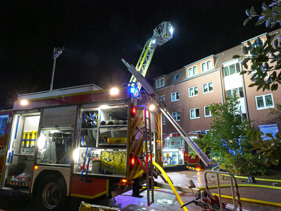Langenhagen (redk). In der Nacht zum Freitag ist im obersten Stockwerk eines Mehrfamilienhauses in der Tempelhofer Straße in Langenhagen ein Brand ausgebrochen, der sich rasch auf die gesamte Wohnung ausdehnte. Die Alarmierung der Einsatzkräfte erfolgte gegen 23.40 Uhr. Die Feuerwehr evakuierte nach ihrem Eintreffen alle 11 Bewohnerinnen und Bewohner unverletzt und nahm anschließend die schwierigen Löscharbeiten auf.