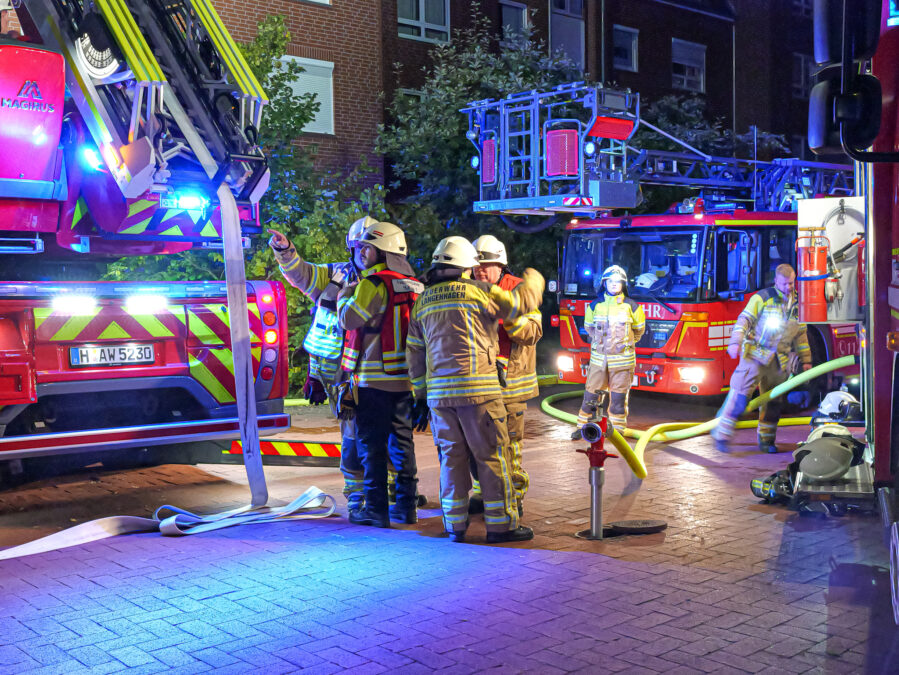 Langenhagen (redk). Am späten Freitagabend wurde die Ortsfeuerwehr Langenhagen um 23:39 Uhr zu einem Zimmerbrand in einem Mehrfamilienhaus alarmiert. Da zunächst unklar war, ob sich noch Personen in der betroffenen Wohnung befanden, wurden vorsorglich weitere Kräfte aus Godshorn, Krähenwinkel sowie der Einsatzleitwagen 2 der Stadtfeuerwehr hinzugezogen. Im weiteren Verlauf unterstützte zudem die Feuerwehr Altwarmbüchen mit einer zweiten Drehleiter.