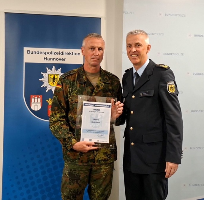 Bundespolizei ehrt DB-Sicherheitskräfte und Bundeswehrsoldaten