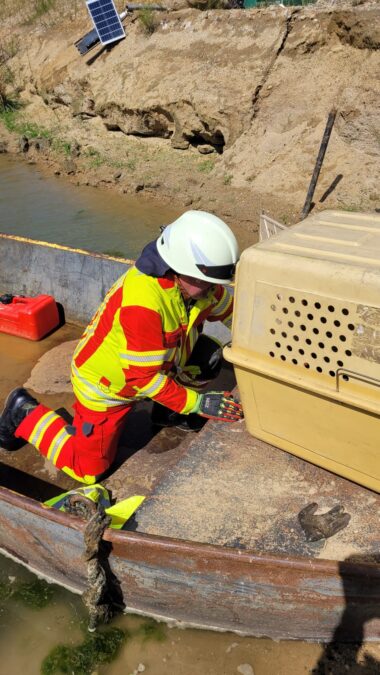 „Das Tier wurde zur weiteren Untersuchung in die Tierärztliche Hochschule nach Hannover gebracht“, heißt es seitens der Feuerwehr. „Dort wird es getrocknet, untersucht und wieder aufgepäppelt.“